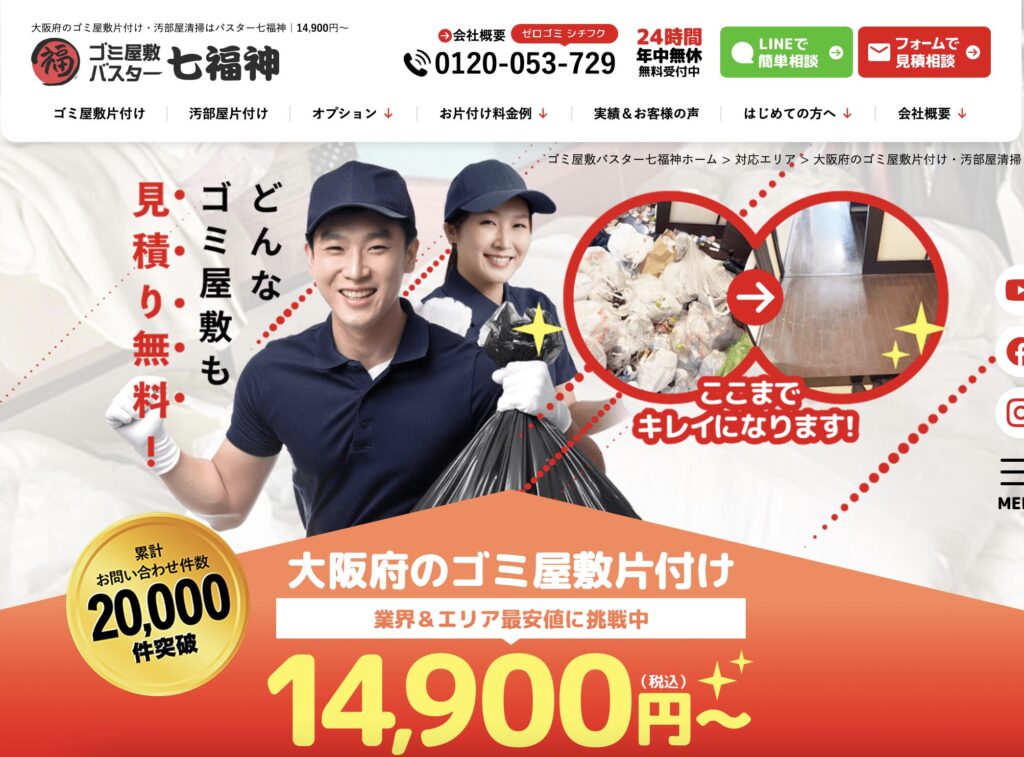 「こんな汚部屋どうしたらいいの」「誰にも相談できない…」そんなゴミ屋敷や汚部屋は片付けのプロ、ゴミ屋敷バスター七福神にご相談ください。私たちは年間20,000件以上、お客様の元に向かうゴミ屋敷片付け・清掃の専門業者です。